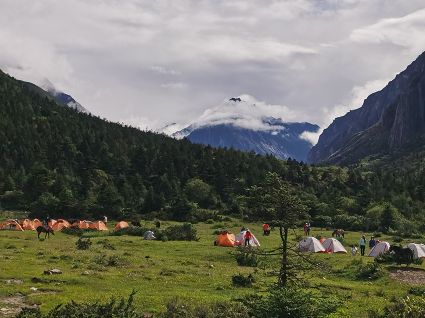 乘車(chē)最遠(yuǎn)可以到格西草原,整條徒步線路需要6—8小時(shí),中午一頓路餐,當(dāng)天可以返回,也可以選擇在格西草原露營(yíng)一晚,因?yàn)檫@里是徒步穿越貢嘎的必經(jīng)之路,露營(yíng)的隊(duì)伍也比較多。