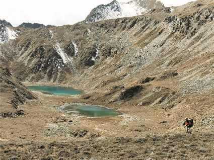 雪山、海子是高原風光的重要組成,讓人迷醉的風景里少不了它們的身影。在大山脊看貢嘎的徒步線路中,沿著大山脊還有一條較為小眾的徒步線路,是由海子串起的,同樣整個線路都可以看見貢嘎主峰。