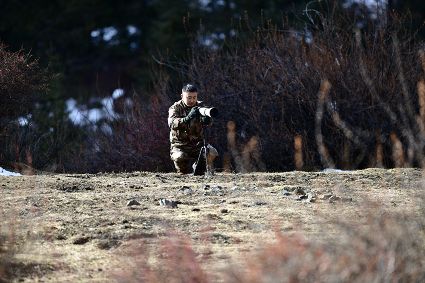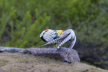 4月16日,筆者在康定市雅拉鄉(xiāng)境內(nèi),再次拍攝到國(guó)家二級(jí)保護(hù)動(dòng)物白腹錦雞求偶的清晰視頻。一只色彩斑斕的雄鳥,拖著黑白相間的云狀斑紋尾羽,圍著雌鳥跳起了“圓舞曲”。整個(gè)求偶過(guò)程有十多分鐘。每年三至五月是白腹錦雞求偶期。
