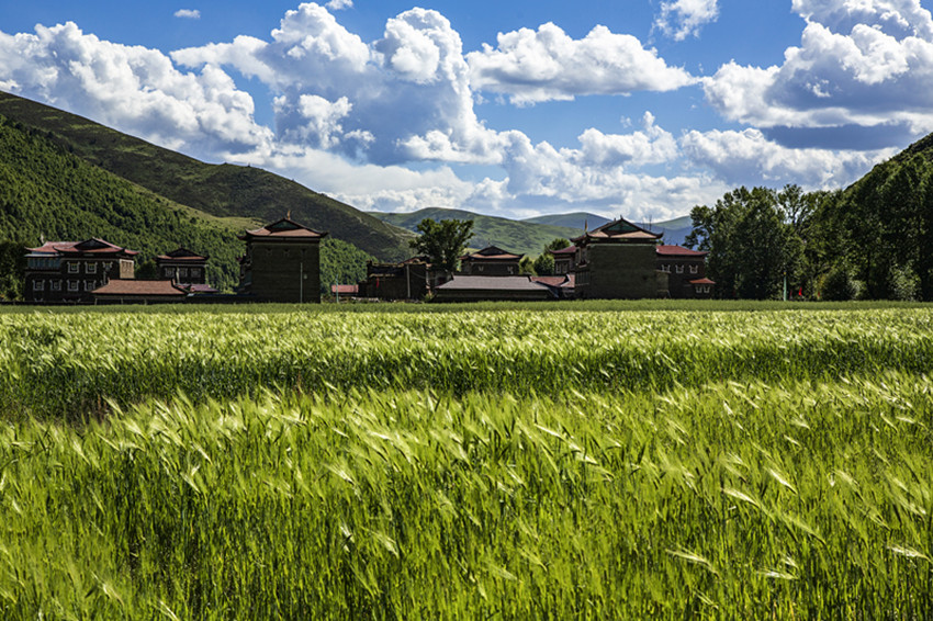 然后行走在山水之間,擁抱大自然,尋找屬于自己的“詩和遠(yuǎn)方”。油綠的青稞、小麥,散發(fā)出濃郁的田園風(fēng)味;天邊群山起伏,磅礴的氣勢瞬間感覺人在自然面前實(shí)在太渺小;帳篷點(diǎn)綴著開滿野花的牧場,牦牛哞鳴,一片生機(jī),細(xì)細(xì)體會(huì)牧民“逐水草而居”的生存智慧......