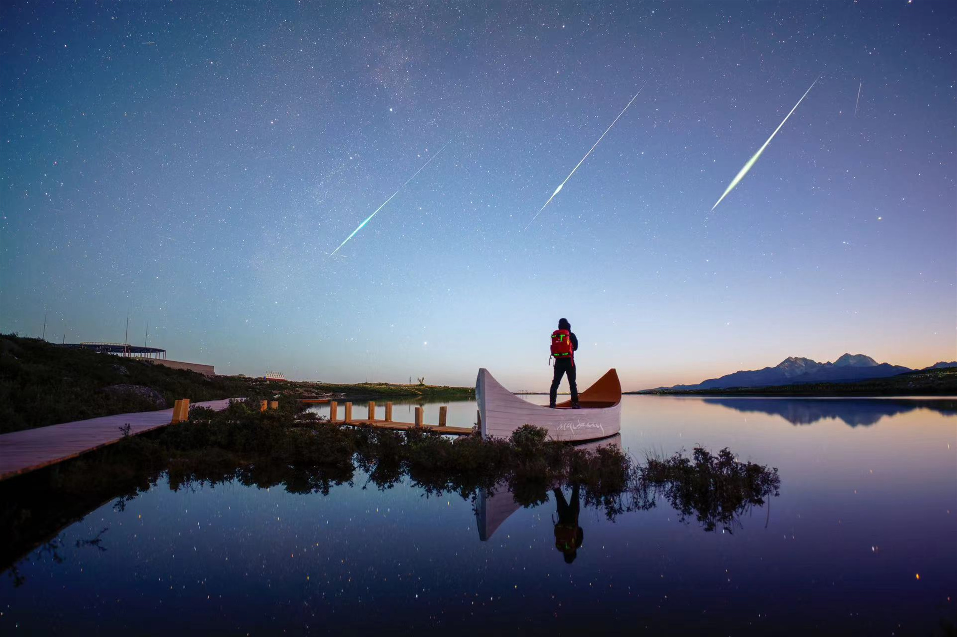 8月12日晚至13日晨,英仙座流星雨“光臨”地球、綻放夜空,吸引了眾多天文愛好者“追星”。我州不少星空攝影愛好者成功捕捉到了英仙座流星雨的群內(nèi)流星劃過天際的浪漫畫面和精彩瞬間。在康定市斯丁措,流星雨恰逢極光,更是為觀測者帶來雙重驚喜。圖為記者捕捉到英仙座流星雨與極光同框的畫面,絢爛的紅色極光扮靚夜空,讓夜色顯得格外迷人。