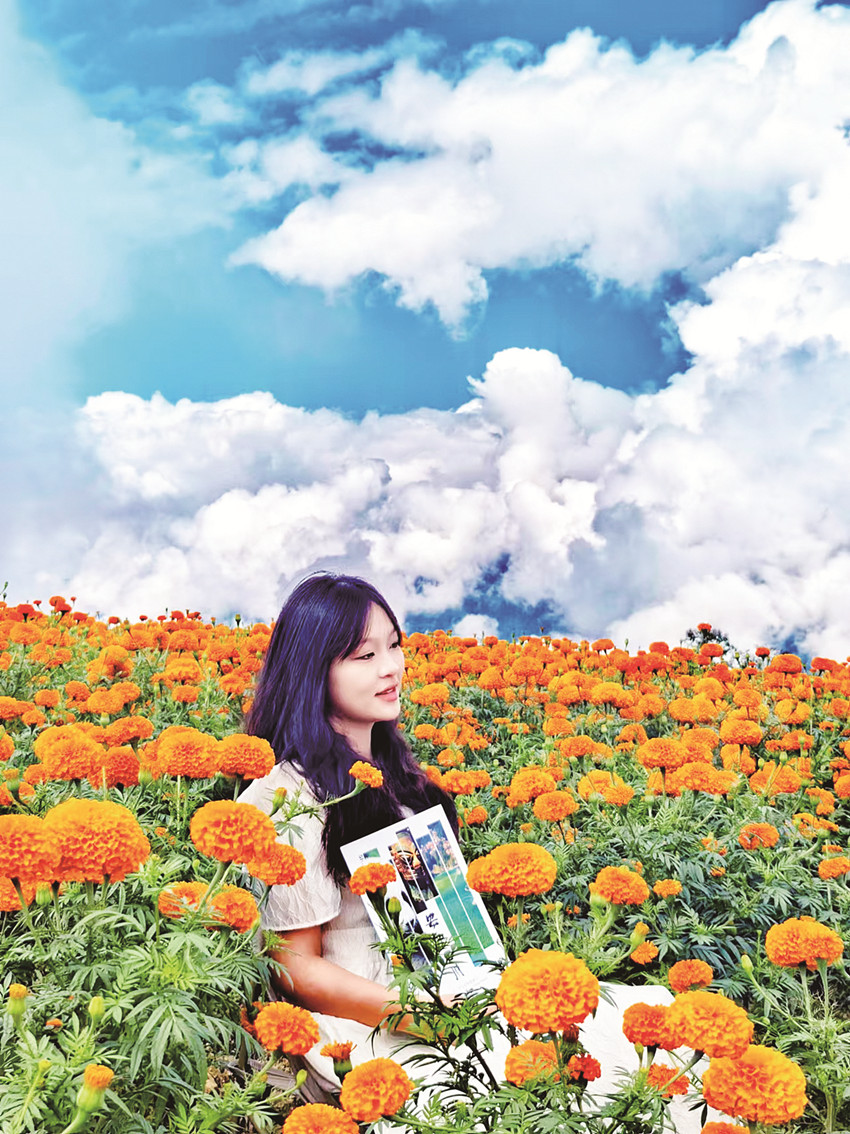 在這金風(fēng)送爽的秋日,瀘定德威加郡海子村18萬株萬壽菊競相綻放,漫步在花海之中,人們可以感受秋風(fēng)的輕撫,呼吸清新的空氣,寧靜的村寨依托著貢嘎雪山、藍(lán)天白云,在成片的萬壽菊裝點(diǎn)下構(gòu)成了一幅亮麗的鄉(xiāng)村畫卷。