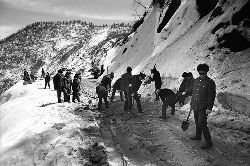 一九九七年十一月二十四日,連續(xù)多日大雪,把整個二郎山裹得嚴(yán)嚴(yán)實(shí)實(shí),白茫茫一片。陣陣山風(fēng)吹過,大霧就像瀑布一樣,從山頂直往下翻涌傾瀉。 一大早,州交通局打冰除雪排險的干部職工就從二郎山管理站直奔山埡口。載有防滑砂的大貨車穿迷霧,繞山梁,向山頂埡口疾馳。由于氣溫太低,霧又大,車上的擋風(fēng)玻璃很快就結(jié)下了冰,路面打滑非常嚴(yán)重。前面車輛堵了起來,排險人員只好下車步行。 大霧彌漫,能見度很底,陰霾的天空又飄起了紛紛揚(yáng)揚(yáng)的雪花,剌骨的寒風(fēng)陣陣襲來,只聽見車蓬布在風(fēng)中“嗶剝”作響,卻看不見前面到底堵了多少車。排險人員只好相互攙扶踩著冰滑的邊路艱難地向行。好不容易來到堵在最前面的車子面前。原來是一輛載著原木的東風(fēng)牌大貨車側(cè)滑在公路上,把整個公路堵死了。 局領(lǐng)導(dǎo)當(dāng)即指揮大家用鋼釬、鐵鎬和鋤頭處理冰道,沒有撮箕,大家借來加水桶裝運(yùn)冰雪……氣溫仍在急劇下降,剛從雪堆里刨出來的路,又被結(jié)起一層冰,就像地面上澆上了油,這就是冰雪道上有名的“桐油凌”。 有二位老同志不顧年老體弱,積極參與打冰除雪,一個在打冰時,被彈起的冰碴把腦門劃了一個口子,鮮血直往外冒。有人想幫他包扎,他堅決不干,自己就用手帕按住,把帽子向下拉蓋住傷口就算了。血從手帕中浸透出來,與眉毛上的冰凌結(jié)在一起。氣溫太低,冰層太厚,十字鎬每挖一下,多數(shù)情況下也就是挖下一個白點(diǎn)而已。不一會兒,另一位老同志已是滿頭大汗,大家勸他休息一下,他卻說:趁著現(xiàn)在雪不是太大,早點(diǎn)把主道上的冰雪多除點(diǎn),過往二郎山的車輛就多一份安全。 排險人員的手凍紅了,刨冰雪碰傷的指頭還流著鮮血,身上蒸發(fā)的熱氣,把衣領(lǐng)口、袖子口和褲子口結(jié)成了冰,可是,誰也沒有吭一聲。 ……受堵車輛終于向前開動了。 風(fēng),越刮越猛,雪,越來越大。 防滑車在冰雪道上艱難地向前爬行著,車箱上面的職工們揮舞的洋鏟向路面撒著防滑砂。一路上風(fēng)絞雪,防滑車象一頭不聽使喚的牛,顛簸、亂竄,好不容易才來到260(二郎山最險處),對這里“桐油凌”路面進(jìn)行重點(diǎn)防滑處理后,防滑車又返回來,開始向山頂進(jìn)發(fā)……風(fēng)雪二郎山上打冰除雪、防滑排險,看似沒有驚天動地的壯舉,身臨其景才知其艱難辛苦。難怪當(dāng)年每每經(jīng)過二郎山冰天雪地奇險路段的車,都會向風(fēng)雪中屹立路邊的交通系統(tǒng)排險保暢通的職工們鳴笛致敬,風(fēng)雪中的那份情彌足珍貴。 川藏線上的老司機(jī)傳下來一首傷心的順口溜:“車過二郎山,如闖鬼門關(guān),萬幸不翻車,也要凍三天!”其險峻實(shí)為罕見,尤其是途經(jīng)二郎山260(公路公樁)處,曾被淡虎色變的人稱為“鬼招手”的險路段。 1983年1月3日,有著安全行車44萬公里記錄的一位駕駛員開著輛嶄新的東風(fēng)牌貨車,同行還有兩名職工,夜行二郎山,在彌天大霧中神秘地“失蹤”了。十五天后,搜山的人才用望遠(yuǎn)鏡看到260公里路樁處的山崖下,有一塊汽車破篷布掛在樹枝,猶如招魂的凄厲幌幡在冷風(fēng)中招搖晃動。鋼纜繩吊著搜山的人下到崖下400米深處的谷底。扒開一座座雪堆,叫人汗毛倒豎:雪堆下,盡是廢大梁、爛車廂、銹車頭和支離破碎的汽車,足有一個汽車連!一輛不知埋了多久的卡車廂里牛肉已腐爛,駕駛室里坐著三具發(fā)黑的僵尸……其狀慘不忍睹!