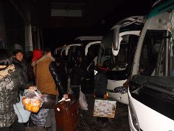 康定的凌晨天氣異常寒冷,但車(chē)站候車(chē)室的椅子上已坐了不少帶著大包小包的乘客。徐世貴和妻子在高爾寺山隧道工程做工,臨近春節(jié),他們跟老板請(qǐng)了假,提前回河南老家。由于擔(dān)心買(mǎi)不到票,早上5點(diǎn)就來(lái)到車(chē)站,而發(fā)車(chē)時(shí)間是上午8點(diǎn)。“春運(yùn)期間,沒(méi)想到票很快買(mǎi)到,早知道就不用那么急了。”徐世貴有些懊悔地說(shuō),“不過(guò)車(chē)站的服務(wù)質(zhì)量高了。我們坐在這里很暖和,還能喝上一杯熱騰騰的開(kāi)水,有一種回到家的感覺(jué)。”