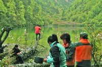但如果讓我再去走從昌壩村到昌壩海子那條旅游線路——以昌壩海子為終點——我一定會約上幾位志同道合的朋友并拿出足夠多的時間慢慢去走,慢慢去欣賞沿路的風(fēng)光,而不是匆匆趕路以致忽略了周遭的景致或忽略了對它們的欣賞;我們還會在綠寶石一樣的昌壩海子邊多待一些時間,或許一天一夜吧。在這一天一夜里,我們會試著繞湖一周;我或我們還會在更多的時間里靜靜地面對她,什么也不想——或許這就是咖教授所言的“靜海滌心”了。