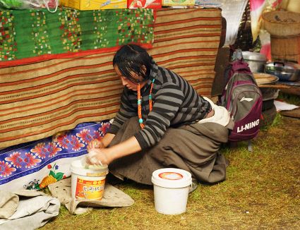 達(dá)珍和她的丈夫是我州爐霍縣宗塔草原上普通的牧民,育有一對(duì)兒女,都在縣上讀書,小兒子上小學(xué),大女兒讀初中,放暑假,11歲的女兒回到了牧場(chǎng),幫助阿爸、阿媽放牧。女兒的到來(lái),讓達(dá)珍家每一天都充滿了歡笑,7月中旬的一天,筆者來(lái)到了這里,用像機(jī)記錄了達(dá)珍的一個(gè)早晨,那是一個(gè)朝霞滿天的開始。 郭昌平 攝影報(bào)道