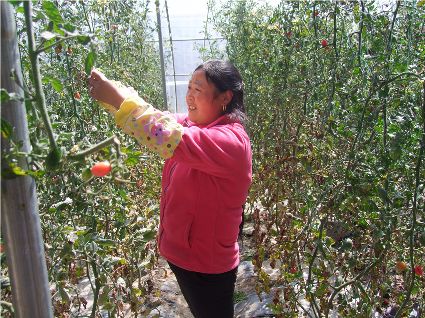 本網(wǎng)訊(馬建華 文/圖)陽春三月,爐霍大地仍然一派蕭條景象。然而在爐霍縣斯木鄉(xiāng)吉絨村的蔬菜大棚里,卻綠意盎然。紅彤彤的樹番茄、碩大的茄子、長勢(shì)喜人的青椒、紅艷艷的花卉,大棚里溫暖的春色吸引了縣城市民和游客前來觀光,購買新鮮的蔬菜。比縣城菜市場(chǎng)價(jià)格便宜一半的蔬菜,讓市民爭相前來購買。吉絨村村民將土地流轉(zhuǎn)給蔬菜種植公司,收取土地流轉(zhuǎn)費(fèi),在蔬菜大棚里打工,每天還有100元錢的收入,而且學(xué)到了先進(jìn)的蔬菜種植技術(shù),為今后發(fā)展蔬菜大棚、種植反季節(jié)蔬菜、增加經(jīng)濟(jì)收入打下了堅(jiān)實(shí)基礎(chǔ)。爐霍縣在發(fā)展高原特色現(xiàn)代觀光農(nóng)業(yè)方面邁出了可喜步伐。