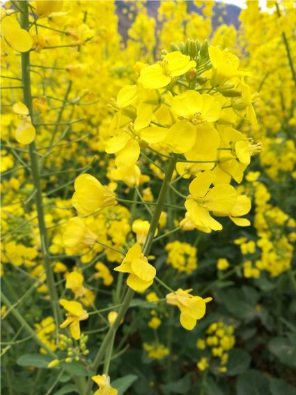 油菜花是我兒時的記憶,外婆為了生計,總會在家門口的幾畝菜地里滿滿當當?shù)姆N上油菜,菜花開的時候,我就會端上一根長板凳、一根方板凳坐在油菜花前寫作業(yè),油菜花的清香伴我度過了整個童年。記得兒時,每逢春季,田野里都會被一簇一簇的油菜花裝扮的金黃,大片的花兒披著一層金裝,偶爾一陣清風(fēng),大地上便掀起了片片的漣漪,烈陽下金光燦燦,甚是好看!