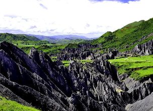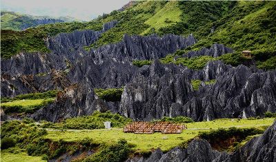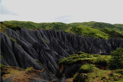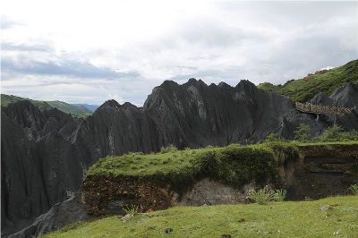 墨石公園,是中國唯一高原石林景觀,被譽為“中國最美景觀大道第八美 ”。受第四紀新構(gòu)造運動影響,隨著青藏高原的隆起,鮮水河斷裂帶中的巖石受到擠壓、剪切、破碎、糜化,形成糜棱巖石林。石林含丐鹽,受空氣濕度影響,干燥季節(jié)呈淺灰色、淺藍色,濕潤季節(jié)呈滄黑色,因此又稱之為變色石林。