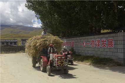 “我們要利用這段晴好的季節(jié),抓緊收割?!痹趶V袤的原野,村民們開鐮收割青稞,一輛輛滿載成捆青稞的拖拉機(jī)在田間和鄉(xiāng)村小道上歡快地疾馳。