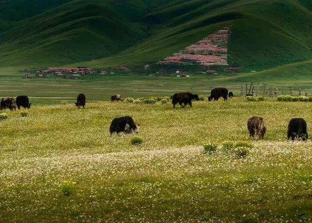 在爐霍,當然也有很多地方可以賞花,比如,被譽為跌落人間的彩虹——宗塔草原,那里的春天花開成海,高山草原,寬闊無垠,浩瀚遼闊的草原依次盛開桃紅、黃、白、藍、紫不同顏色的野花,仿佛將天上的彩虹摘了下來。成就了宗塔草原“七彩草原”的美名。