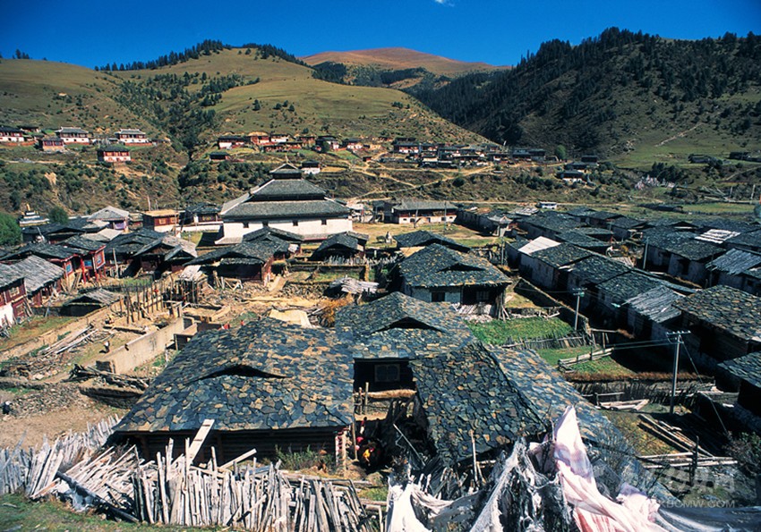 拉日馬意為“美如仙境,安居樂業(yè)”,曾經(jīng)是新龍至康定這條茶馬古道的貫穿之處。南距縣城60公里,北距道孚扎壩走婚大峽谷20余公里,海拔3600米。山、水、林、草原、珍禽異獸、扎宗寺、尊勝吉祥如意塔、甘珠爾石刻彩繪佛塔、石板藏寨的絕美搭配,盡顯中國西部神韻,素有“天堂部落拉日馬”和“中國石板藏寨”之美譽。拉日馬鎮(zhèn)有個叫扎宗村的寨子,這里的民居大多用石板蓋成,一宅一院,木柵欄、青石路、石板屋頂,古樸而實用。在藏區(qū)許多地方有石板蓋的房屋,但像拉日馬這樣集中、形成一個整體的不多見。
