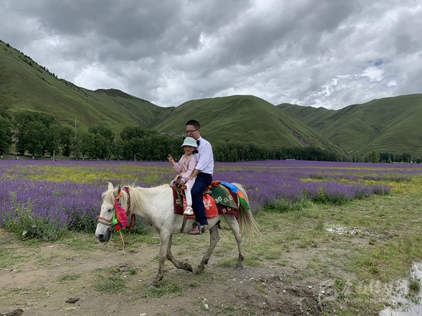 是時,微風(fēng)乍起,黛山環(huán)抱下的花海漾蕩著瀲滟的紫光,裹挾著無邊的浪漫和淡淡的芳香,向棧道上的游人涌來,彌漫到腳邊、四溢到身旁——踏訪這個藏在川西高原的“普羅旺斯”詩境實地,一幅美不勝收的“夏日高原送爽圖”令人心迷神醉。
