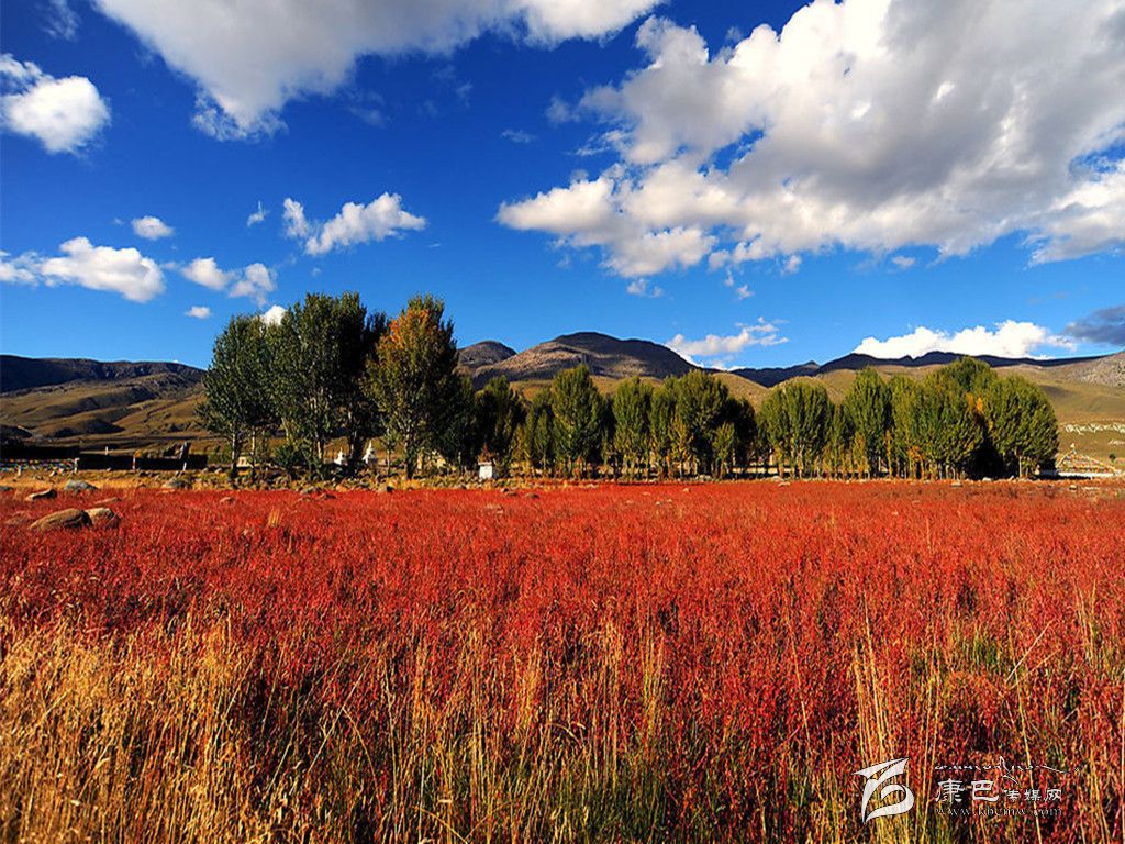 秋季(9月—10月)是稻城一年中最有詩意的季節(jié),秋天的稻城是炫麗多彩的,稻城的紅草地與黃色的萬畝楊樹林讓人置身于色彩的海洋,與藍天白云交相輝映。這個季節(jié)的夜晚和清晨觀看神山如夢如幻。在靜靜的傍河,在金色的楊樹林,在一見傾心的紅草灘……青楊樹林只有兩種顏色:金黃金黃的樹,蔚藍蔚藍的天。無論在什么角度,取景框里永遠是一幅絕美的圖畫。重訪紅草灘,幾乎屏住了呼吸。紅草像一片火焰在燃燒...