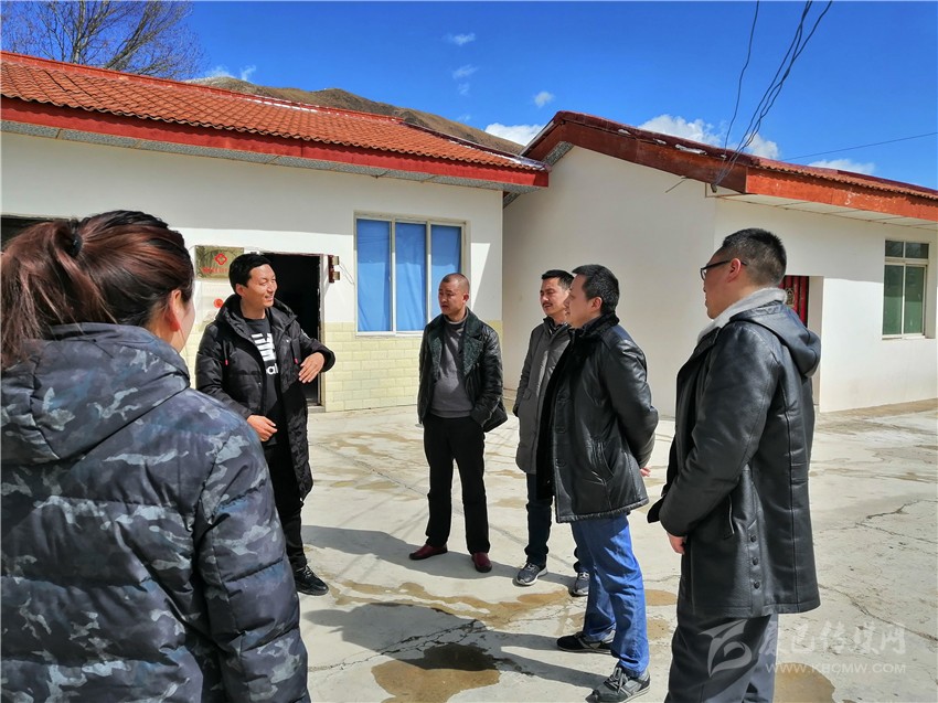 地上有一層白白的雪,錯落有致的藏式房屋,還有魔幻的藍天,儼然是一幅鑲嵌的美景!