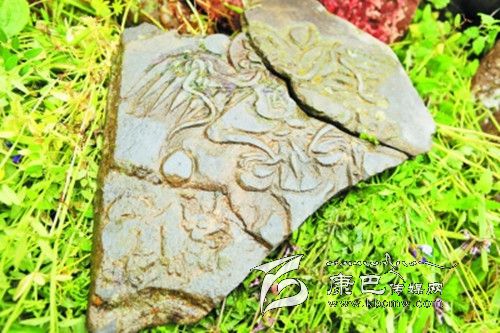 另外,今內(nèi)蒙古伊克昭盟伊金霍洛旗成吉思汗陵,供奉的“成吉思汗狩獵馬鞍”上,有二龍戲珠(“如意寶”由六顆海螺束成),其下面是大鵬金翅鳥護(hù)衛(wèi)牦牛圖形,這是典型的川西地區(qū)苯教圖案。2012年7月8日,調(diào)查小組一行在協(xié)德鄉(xiāng)古寺瑪尼堆中,也采集到大鵬金翅鳥護(hù)衛(wèi)牦牛的石刻(宋代)。9月28日在協(xié)德鄉(xiāng)雀兒村藏民擁措家看到一副馬鞍,其上也有類似的二龍戲珠、如意寶圖形。成吉思汗的“狩獵馬鞍”是成吉思汗到過(guò)川西藏區(qū)的最有力的證據(jù)之一。