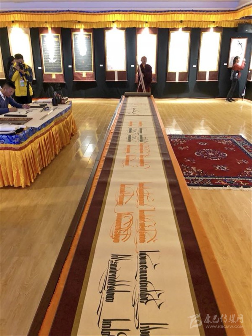 站在“倉央嘉措詩歌藏文書法百米長卷”面前,來自成都的徐賢前感嘆到:“我一直都很喜歡倉央嘉措的詩歌,但從來沒有想過可以通過書畫的形式來展現(xiàn)倉央嘉措詩歌,雖然我看不懂藏文,但是依然感到震撼,這次我真是不虛此行??!”據(jù)了解,在詩歌節(jié)期間,理塘縣電子商務孵化中心書畫文化廳內(nèi)展出由縣級非遺卓擦書法傳承人、縣級非遺噶瑪嘎孜派唐卡傳承人、縣書法協(xié)會成員等集合而成的近60幅藏漢書畫作品。其中,首次對外展出的“倉央嘉措詩歌藏文書法百米長卷”引來了眾多參觀者的圍觀。