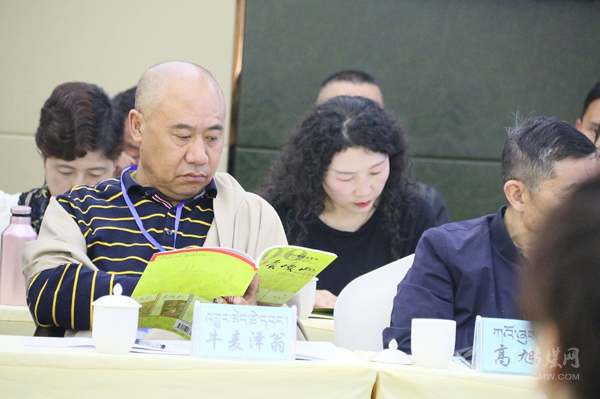 會(huì)議室正中的電子屏上,“貢嘎山期刊交流暨2019年藏漢文作家培訓(xùn)會(huì)”白色字體赫然入目。室內(nèi)最靠后的桌上,《貢嘎山》200期紀(jì)念???、《貢嘎山》第199期等藏漢文讀物有序擺放,吸引了不少“粉絲”當(dāng)場品讀。
