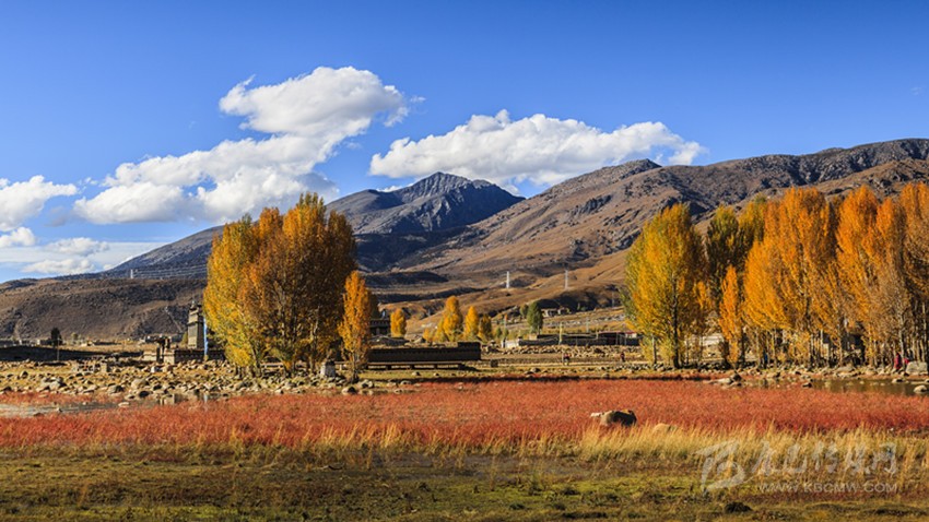 生活的美好在萬畝格?;ê@?、在山溝溝里巨大的秋陽灑落我周身的溫暖里、在公路兩旁的蓮花白緊實(shí)的菜心里,美好的日子是公路旁小木臺(tái)上擺滿的橢圓黃色,青黃的蘋果,一袋袋牦牛肉干、筍黃色南瓜里,美好在萬萬棵果樹、白楊樹、柳樹林間。美好是阿媽高原紅的臉蛋兒透出血紅色的笑臉。