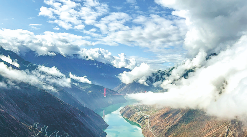 閑談歸閑談,施工卻沒有一刻停留。大橋在建設者的手上從四根柱子開始,到鋼纜的架設,再到鋼桁梁的吊架、路面的鋪設,大橋在全城人的仰望之中,一天一個模樣,而贊嘆也在這種變化中一浪高過一浪。當二〇一八年最后一天的早上,雅安到康定的高速公路正式通車,大量的汽車開過這座被譽為“天上的大橋”時,瀘定人民的驚嘆聲達到了一個頂點。那天,父親受爺爺?shù)奈?,專門開車來到大橋下,用相機記錄下了汽車快速從橋上經過的畫面,拿回家給爺爺看。爺爺看著看著,就像小孩一樣哭了起來,嘴里不停地嘮叨:“想不到啊,想不到!”