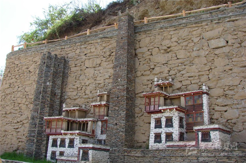 宋達村活動場所是一個寬約二十米,長約三十米的大壩,里面是高約十米的石砌圍墻,此時幾個工人正在忙碌著,幾座建筑模型已初見成形,最左邊是一座十三角碉的模型,一名工人坐在碉樓的樓頂上拿著手錘正奮力的敲打著眼前的石片,那石雕一半露在墻外,還有一半巧妙的鑲嵌在圍墻里。筆者走上前去,來到“碉樓”下,整座碉樓都是用灰色的石片砌成,每個石片間距一致,幾乎不見一點縫隙,充分展示了嘉絨人民高超的石砌技藝。十三角碉,顧名思義,就是整座碉樓由十三個角組成,在古時候是展示財富和地位的一種表現(xiàn)形式,砌墻的師傅非常健談,他告訴我,在嘉絨地區(qū),碉樓又以十三角碉最為罕見,據(jù)說,如今殘存的十三角碉全世界都只有三座,而其中保護得最為完整的尤數(shù)梭坡鄉(xiāng)普格頂村了,他頓了頓,伸出布滿青筋沾滿灰塵的手,往上指了指,自豪的說,它就在我們宋達村的山巔上,我不禁肅然起敬,為家鄉(xiāng)擁有這樣一座凝聚著嘉絨人民智慧結(jié)晶的古碉而激動不已。在十三角碉旁,是一座典型的嘉絨藏房模型,共有五層,第一層為關(guān)牛羊的畜圈,石砌匠人巧妙的將一樓門洞和排水口合二為一,即增加了美感,也增加了科學(xué)性。第二層樓房有兩扇窗戶,是人們飲食起居的重要場所。第三層樓房上有三扇窗戶,是儲藏糧食、臘肉的地方。每一扇窗按照比例縮小制成,當(dāng)筆者問匠人為什么嘉絨藏房的門窗都如此矮小時,他對此也娓娓道來。他告訴我,古時候嘉絨大地上混沌莫開、妖魔橫行,人們每天都在膽戰(zhàn)心驚中度過,那時候的房屋窗戶、門都修得異常的高大,夜幕降臨時,這些妖魔就從窗戶、門洞里爬進來,將熟睡的人擄走,后來嘉絨女王要求屬民們將窗戶和門洞改小,后來人們一直將此修建之法一直延續(xù)至今。第四層上是用木板、木頭作成的回廊,紅白相間,煞是美觀。第五層是堆放雜物的場所,石墻的每個角上都有石砌的尖角,如牛角一樣直指蒼穹,在尖角之間,有煨桑祈福的佛塔。再往右邊是一座四角碉的模型,由于只有四角,因此在修建中速度比十三角碉快了許多,那棱角愈發(fā)的鋒利。在嘉絨藏區(qū),這種碉樓是最常見的碉樓之一,碉樓藏語中稱為“邛籠”。早在2000年前《后漢書'西南夷傳》就有羌族人“依山居止,壘石為屋,高者至十余丈”的記載。碉樓多建于村寨住房旁,高度在10至30米之間,用以御敵和貯存糧食柴草。碉樓有四角、六角、八角幾形式。碉樓一般建于沿河谷高山或半坡有耕地和水源的地方,結(jié)合地形,利用有限的平臺,利用石頭筑成平頂。一般分成二層或三層,上層堆放糧食,中層住人,下層圈養(yǎng)牲畜,高二三丈,稱為邛籠;高的可有十三層,達十余丈,稱為碉。碉樓由專門的砌石匠修建,原料為亂石,用泥土粘合,不吊線,不繪圖,全憑經(jīng)驗,信手砌成。其壁面能達到光滑平整,不留縫隙,其堅固程度則可在川西這個地震多發(fā)區(qū)聳立數(shù)十年甚至數(shù)百年,經(jīng)歷數(shù)次地震仍然巍然屹立,有的已偏倚卻不倒,有的彎曲為弓,自成風(fēng)景。它按照功能分為戰(zhàn)碉、家碉、寨碉等。再往右邊走,是一座低矮的樓房,它也是嘉絨藏區(qū)最為常見的藏房之一,雖然低矮,然而其中的雕樓畫棟美不勝收。據(jù)縣農(nóng)辦負責(zé)人介紹,宋達村地處普格頂山腳下,省道線從門前經(jīng)過,山頂山有著為名遐邇的十三角碉,民風(fēng)純樸,因此該村要突出物質(zhì)文化引領(lǐng)經(jīng)濟建設(shè)的發(fā)展,為此打造碉樓文化及藏族民居文化,吸引大批游客走進村莊里,鼓勵村民自己建造有著嘉絨風(fēng)味的藏族民居,實現(xiàn)生產(chǎn)發(fā)展,這是新農(nóng)村建設(shè)的中心環(huán)節(jié),是實現(xiàn)其他目標(biāo)的物質(zhì)基礎(chǔ),也是我們打造宋達村新農(nóng)村建設(shè)所思考的問題,我們也逐步在實現(xiàn)這目標(biāo)。
