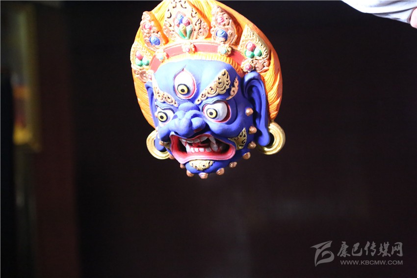 待面具自然風(fēng)干后,用礦物質(zhì)、植物的根等制作的自然顏料進(jìn)行著色,自然顏料有不變色、耐光的特性,通過(guò)一淡、二濃、三淡的上色過(guò)程使面具涂色均勻,待顏料曬干后對(duì)面具進(jìn)行磨光,去除雜物,再對(duì)面具進(jìn)行裝藏念經(jīng),如此,一個(gè)藥泥面具制作完成。做好的藥泥面具有濃郁的藥材香氣,并有著驅(qū)蚊、殺菌、抗病毒、清潔空氣、解除疲勞等功效。