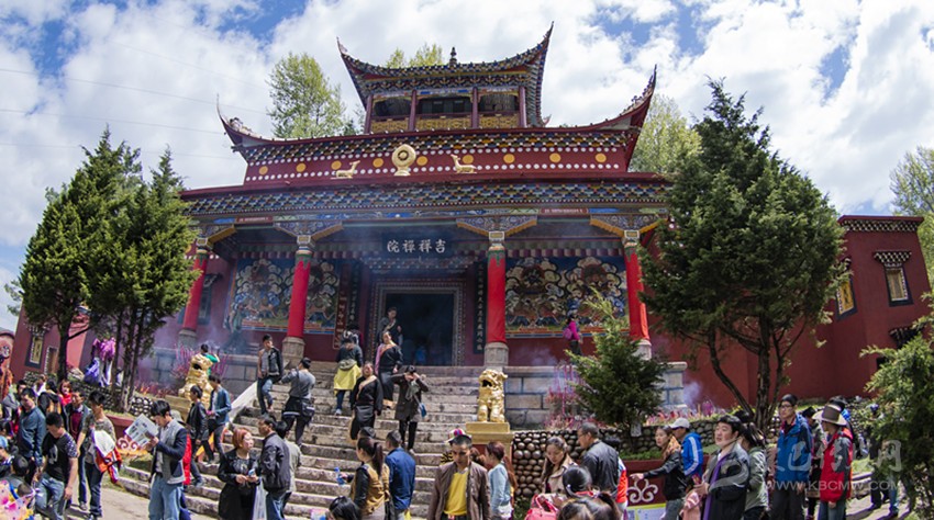 走下石欄,是一處曲廊環(huán)繞的圓形跑馬坪,坪中心為表演場地,外沿是憩息迴廊,坪的上方是一座用水泥澆鑄的藏族騎士策馬騰空的雕像,象征藏族入民揚(yáng)鞭催馬向四化路上飛奔。繞過跑馬坪,便是浴佛池”,據(jù)傳“四月八”這天是佛祖釋迦牟尼的生辰,有九龍吐水為之沐浴,故稱此日為“浴佛節(jié)”。