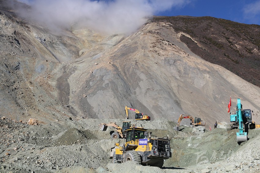 就在專家組緊急會商人工干預(yù)方案期間,從各地增援的大型機械已陸續(xù)抵達集結(jié)。11月5日下午3時左右,在下游葉巴灘水電站施工的水電五局的2臺挖掘機最先抵達白玉縣城,沒做停留又立即向則巴村方向前進。