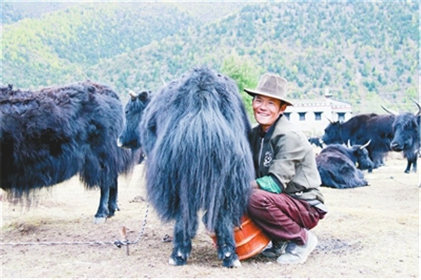 鄧珠澤榮一家多年前從道孚縣八美鎮(zhèn)移居到各卡鄉(xiāng),因為在村上沒有分到土地,家里的開銷都靠政府的福利政策和挖蟲草、采松茸的收入,只能勉強度日。去年,該縣康巴渠德農(nóng)牧事業(yè)發(fā)展合作社與該村達成了定點收購牛奶的協(xié)議,鄧珠澤榮依靠政策的支持成為了一名養(yǎng)牛戶。2017年,他養(yǎng)了50多頭奶牛。光是賣奶制品的收入就有近十萬元;村合作社的5畝高原草莓,產(chǎn)值近12萬元,他家從中獲得了幾千元的勞務(wù)收入和分紅收入。有了這兩項收入,鄧珠澤榮一家迅速由特困戶過上了小康生活。