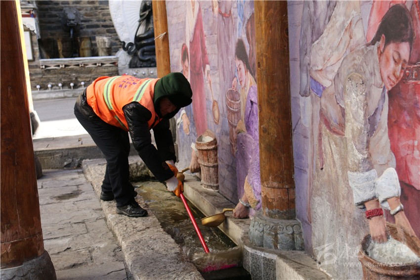 每逢節(jié)假日,是環(huán)衛(wèi)工人最忙最累的時(shí)候。2月5日下午,康定強(qiáng)盛公司清洗組組長(zhǎng)楊曉康帶著全組工作人員來到康定市水井子,打掃整個(gè)水井子的環(huán)境衛(wèi)生?!俺跻弧畵岊^水’是多年來康定市民的過年習(xí)俗,我們現(xiàn)在把這里打掃干凈,讓市民們?cè)凇畵岊^水’時(shí)有干凈整潔的環(huán)境。”楊曉康告訴記者。