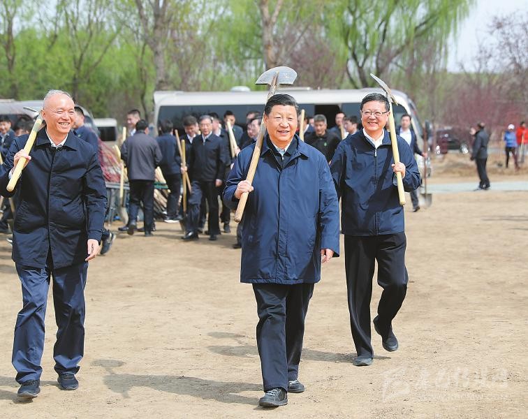 4月8日,黨和國(guó)家領(lǐng)導(dǎo)人習(xí)近平、栗戰(zhàn)書、汪洋、王滬寧、趙樂際、韓正、王岐山等來到北京市通州區(qū)永順鎮(zhèn)參加首都義務(wù)植樹活動(dòng)。 新華社記者 鞠鵬 攝