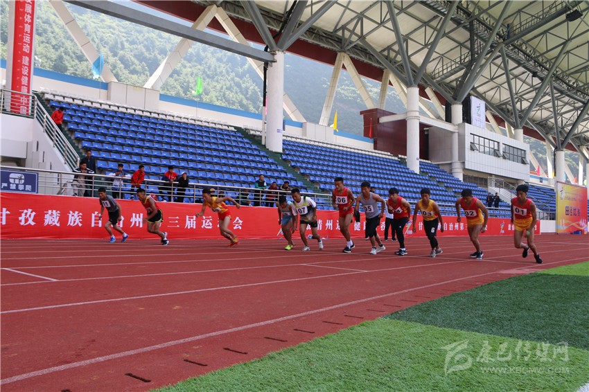 本網(wǎng)訊 8月23日,康定北門(mén)體育場(chǎng)內(nèi)歡聲雷動(dòng)、彩旗飄揚(yáng),州第三屆運(yùn)動(dòng)會(huì)田徑類比賽中的成年男子100米賽跑、成年女子100米賽跑、青年男子100米賽跑、青年女子100米賽跑、成年女子800米賽跑(直接進(jìn)行決賽)和青年女子鉛球6個(gè)比賽項(xiàng)目,按原計(jì)劃在這里進(jìn)行。