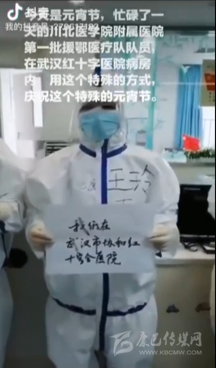 今年的元宵節(jié),注定是一個不平凡的日子。今天,川北醫(yī)學(xué)院援助湖北醫(yī)療小分隊的醫(yī)護人員,在武漢市協(xié)和紅十字會醫(yī)院,通過視頻向全市人民祝福元宵節(jié)快樂,表達(dá)眾志成城、抗擊疫情的堅定信心。
