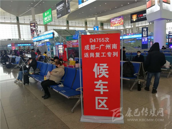 除了專車,還有專列、專機(jī)。2月17日上午,700余名農(nóng)民工乘坐從成都東站開出的G4391次返崗專列前往杭州。2月16日下午,廣元市昭化區(qū)154名農(nóng)民工在廣元盤龍機(jī)場(chǎng)上飛機(jī),前往浙江嘉善縣,農(nóng)民工蔡森是其中一員。