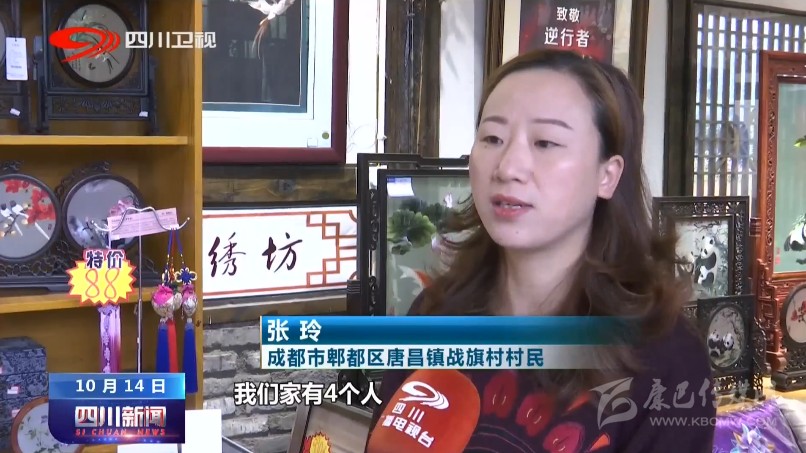 成都市郫都區(qū)唐昌鎮(zhèn)戰(zhàn)旗村村民張玲說:“村上根據(jù)我們土地入股的畝數(shù),我們家有4個(gè)人,每年能夠分到5000塊錢左右,年底還有集體經(jīng)濟(jì)分紅2000塊錢左右。我就在蜀繡坊上班,我老公在村上上班,我媽媽在家里面做民宿,這樣比以前種地時(shí)候收入高了很多?!?/p>