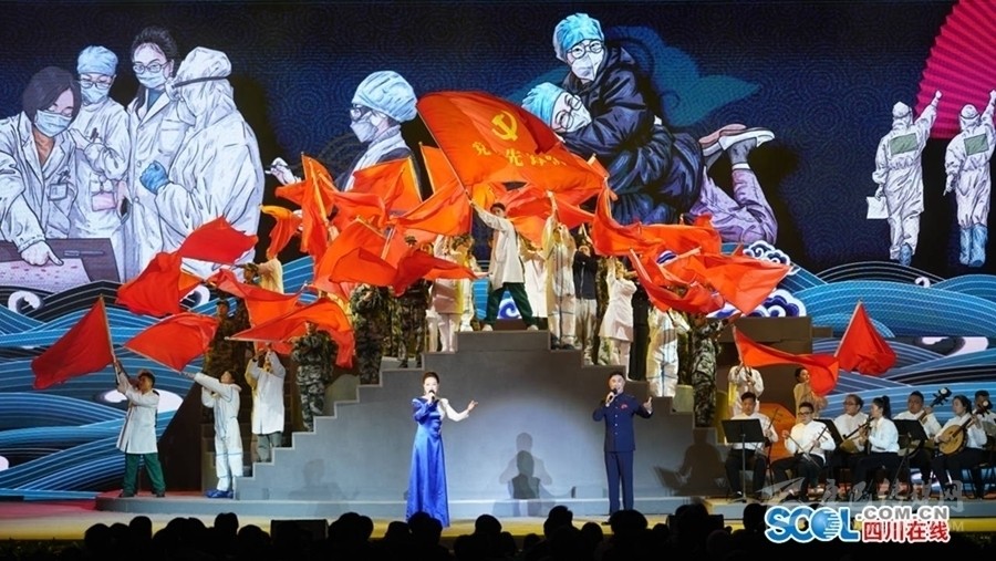 19時30分許,在催人奮進的陣陣鼓聲中,開幕式正式開始。胡和平在致辭中表示,第六屆中國詩歌節(jié)在四川省和重慶市兩地一同舉辦,是落實黨中央推動成渝地區(qū)雙城經(jīng)濟圈建設(shè)決策部署的務(wù)實之舉,也是以文化繁榮為經(jīng)濟社會高質(zhì)量發(fā)展賦能助力的務(wù)實之舉。剛剛閉幕的十九屆五中全會把文化建設(shè)放在突出位置,明確“十四五”時期文化建設(shè)目標要求,提出到2035年建成文化強國的遠景目標。廣大文藝工作者要以習(xí)近平總書記關(guān)于文藝工作的重要論述精神為遵循,貫徹落實黨中央關(guān)于文化工作的各項決策部署,堅持以人民為中心的創(chuàng)作導(dǎo)向,堅持與時代同步伐,發(fā)時代之先聲、頌時代之精神,用心用情用功抒寫偉大時代,推出更多謳歌黨、謳歌祖國、謳歌人民、謳歌英雄的精品力作,推動社會主義文化繁榮興盛,為實現(xiàn)中華民族偉大復(fù)興中國夢凝聚文化力量。
