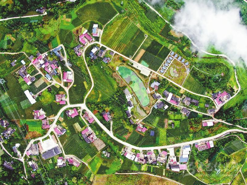 2020年8月17日海子坪村航拍。甘孜州瀘定縣海子坪村打造的“高科農(nóng)技+高端民宿”吸引了眾多游客前來觀光旅游,村民的生活也發(fā)生著美麗的蛻變。 四川日?qǐng)?bào)全媒體記者衡昌輝攝