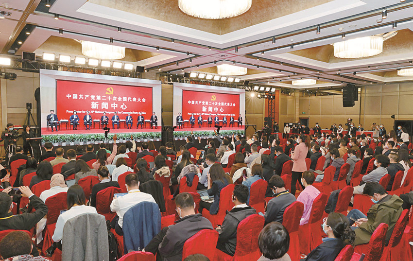 10月18日,中國(guó)共產(chǎn)黨第二十次全國(guó)代表大會(huì)新聞中心舉行集體采訪。黑龍江、上海、江蘇、浙江、安徽、福建、江西代表團(tuán)新聞發(fā)言人出席,介紹代表團(tuán)學(xué)習(xí)討論二十大報(bào)告情況,并回答記者提問(wèn)。 這是分會(huì)場(chǎng)。 新華社記者 殷剛 攝
