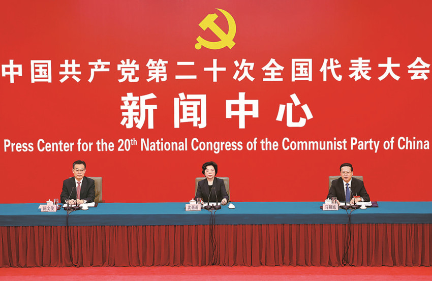 10月20日,中國共產(chǎn)黨第二十次全國代表大會新聞中心舉行記者招待會。中央對外聯(lián)絡部副部長沈蓓莉,外交部黨委委員、副部長馬朝旭圍繞“習近平外交思想指引中國特色大國外交開拓前行”主題與記者交流。 新華社 發(fā)