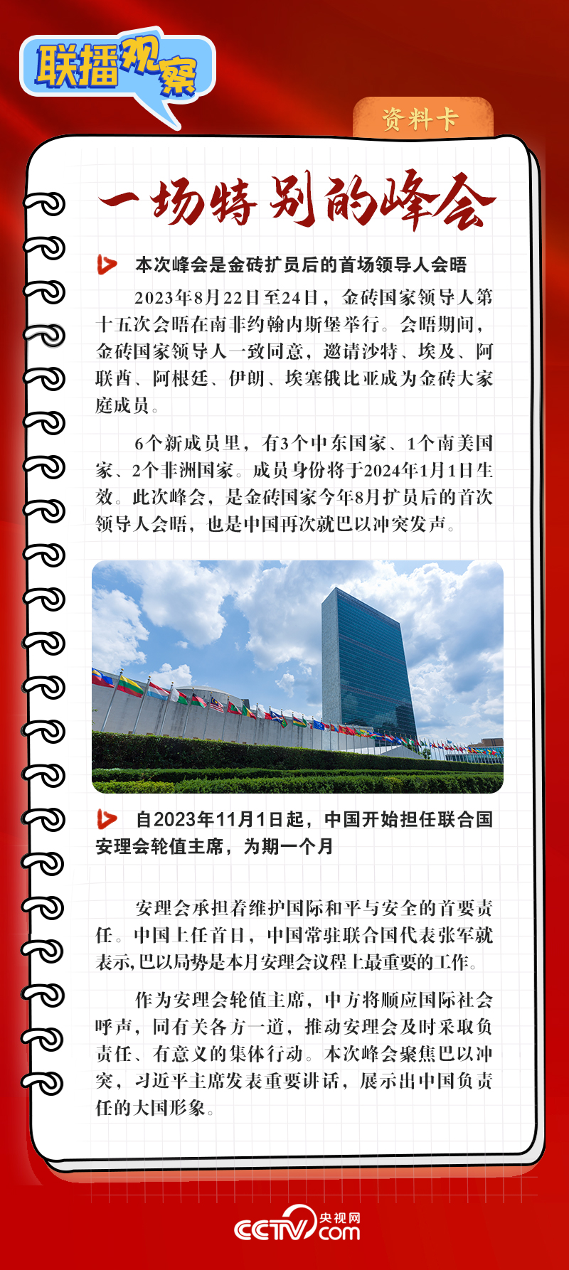 “當(dāng)前形勢(shì)下,金磚國(guó)家就巴以問(wèn)題發(fā)出正義之聲、和平之聲,非常及時(shí)、非常必要?!痹诒敬螘?huì)晤中,習(xí)主席結(jié)合當(dāng)下巴以局勢(shì),提出三點(diǎn)正義主張。