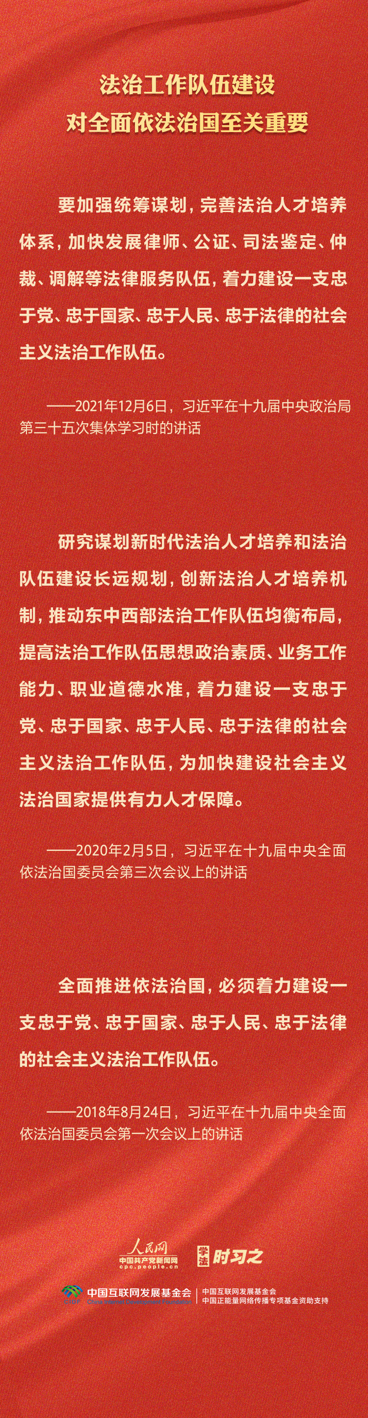 今年是貫徹落實(shí)黨的二十大精神的開局之年。中共中央政治局決定從今年4月開始,在全黨自上而下開展學(xué)習(xí)貫徹習(xí)近平新時(shí)代中國特色社會(huì)主義思想主題教育。習(xí)近平法治思想是習(xí)近平新時(shí)代中國特色社會(huì)主義思想的重要組成部分,人民網(wǎng)·中國共產(chǎn)黨新聞網(wǎng)推出學(xué)法時(shí)習(xí)之·學(xué)習(xí)習(xí)近平法治思想系列策劃,本篇聚焦“堅(jiān)持建設(shè)德才兼?zhèn)涞母咚刭|(zhì)法治工作隊(duì)伍”。