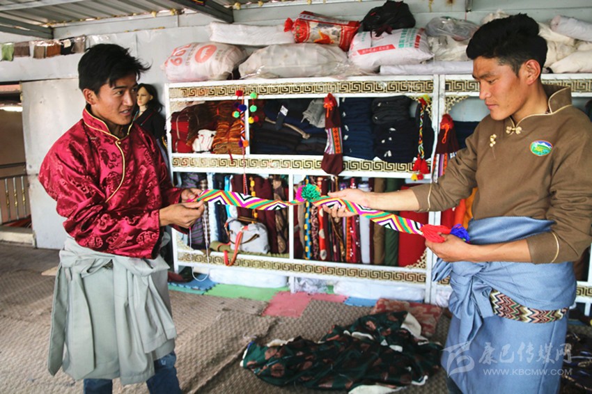 安孜鄉(xiāng)作為白玉縣海拔較高的鄉(xiāng)鎮(zhèn)之一,夏天是十分短暫的,連日來的晴好天氣,也透著絲絲寒氣。牧民阿剛想要量身定做一套過冬的藏裝,8月26日,他來到白玉縣阿察鎮(zhèn),一家民族服飾商貿(mào)公司吸引了他的目光。“我們這里的服裝面料是本地羊毛和從浙江進(jìn)的上等面料,做工考究,很多工序是純手工制作,服裝樣式你可以根據(jù)你的喜好指定,我們包你滿意。”店員仁真熱情地介紹。聽了仁真的介紹,阿剛用手捻了一下服裝用料的質(zhì)地,看到印有“祥陽措”商標(biāo)的精美包裝袋,商店里擺放的五彩斑斕、高端大氣的藏式男女服裝,他有些動心了。“生產(chǎn)這些服裝的都是我們納塔鄉(xiāng)的牧民,你可以考察我們的服裝用料、生產(chǎn)流程,再作打算?!比收鏌崆檠笠绲亟榻B說。