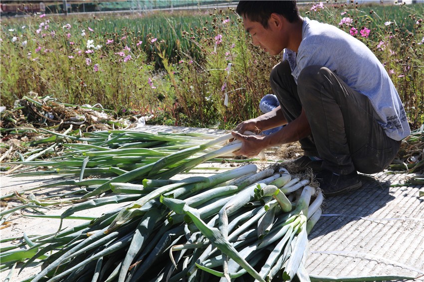 11月的高原,寒意漸濃?!霸鲿?shū)記,明天上午8點(diǎn)大蔥基地需要28個(gè)小工打捆大蔥上車…”5日,道孚縣溝爾普村支部書(shū)記四郎扎西接到大蔥基地管理人員葉洪亞的電話,四郎扎西說(shuō)這是他今年接到安排村民到大蔥基地務(wù)工的無(wú)數(shù)個(gè)電話中的一個(gè)。