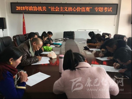 為書(shū)面測(cè)試廣大干部職工“社會(huì)主義核心價(jià)值觀”的實(shí)踐意義,11月29日下午2:00,2018年石渠縣政協(xié)機(jī)關(guān)“社會(huì)主義核心價(jià)值觀”專(zhuān)題考試,在縣政協(xié)黨組成員、副主席楊國(guó)華的監(jiān)考下開(kāi)始。其書(shū)面閉卷筆試為:?jiǎn)雾?xiàng)和多項(xiàng)選擇題及簡(jiǎn)答“三嚴(yán)三實(shí)”與“社會(huì)主義核心價(jià)值觀”內(nèi)容和論述題:一是結(jié)合藏區(qū)與自己的思想實(shí)際及政協(xié)工作特點(diǎn),有條理的闡述如何開(kāi)展“社會(huì)主義核心價(jià)值觀”實(shí)踐活動(dòng);二是踐行“社會(huì)主義核心價(jià)值觀”的重大意義及措施、方法等。通過(guò)一小時(shí)左右的臨場(chǎng)測(cè)試,應(yīng)考的政協(xié)機(jī)關(guān)干部職工含臨時(shí)工、駕駛員、實(shí)習(xí)生等,人人均遞交了滿意的答卷。