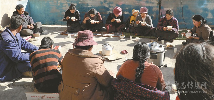 “請(qǐng)注意腳下哈,不要絆倒了喲!你們把這趟搬了就過(guò)來(lái)吃午飯,等吃完飯后再搬。”筆者在金沙鄉(xiāng)八吉村采訪時(shí),親眼目睹了十幾個(gè)忙碌的身影穿梭在一頂帳篷與院壩之間。一經(jīng)打聽,原來(lái)是村民扎西多吉的親戚和鄰居在幫他搬運(yùn)柴火。