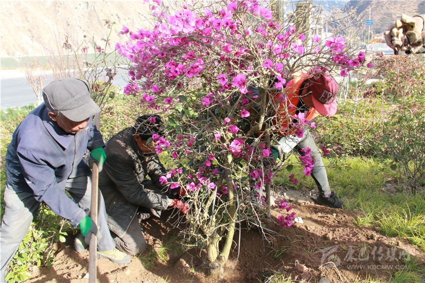 走進烹壩鎮(zhèn)沙灣村,但見村道兩旁,小溪潺潺流淌,鮮花競相盛開,庭院綠化工作人員忙得不亦樂乎。他們正在給新栽植的三角梅、黃花槐、木春菊、海棠等景觀植物澆水,以確保新樹的成活率。