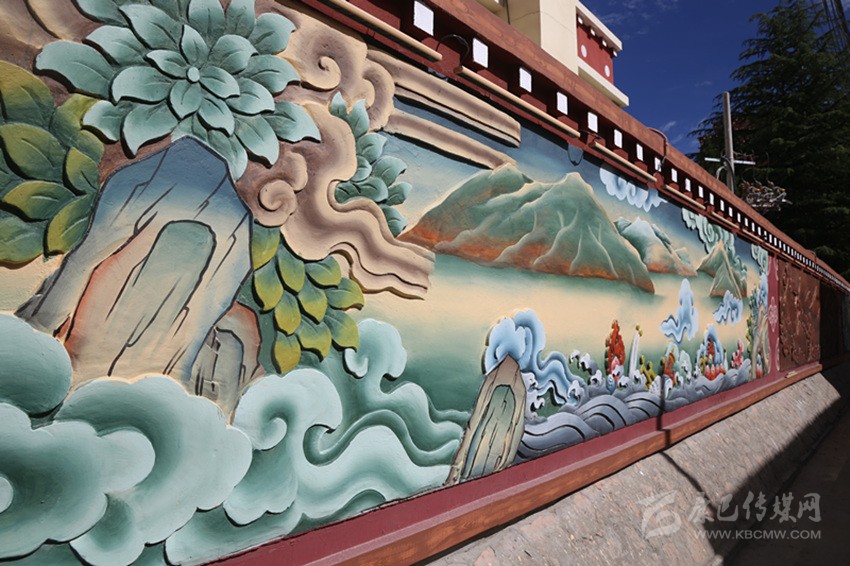 當(dāng)筆者一行走在巴塘縣城,墻體繪畫上“巴塘八景”躍然于上,“巴山積雪”“柳林較射”“桃園賞花”“板橋垂釣”“古桑抱石”“溫泉沐浴”“暖石回陽(yáng)”“老柳夾槐”色彩豐富、構(gòu)思精巧,平淡無(wú)奇的墻面因?yàn)橐环r活的繪畫變得生活,一面墻一幅畫一個(gè)故事。街頭巷尾,十字路口的“大鵬蓮花燈”“九眼天珠燈”“走馬燈”高高懸掛展示巴塘風(fēng)貌。以“茶馬古道”為主題打造的“最美古鎮(zhèn)”,悠悠古韻講巴塘故事,古色古香顯巴塘韻味……