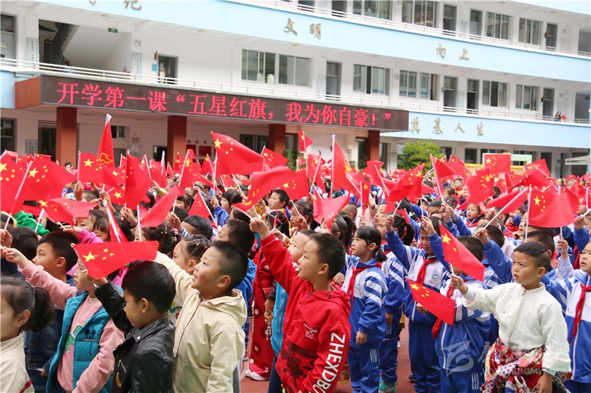 開學(xué)典禮結(jié)束后,各年級(jí)開學(xué)第一課“五星紅旗,我為你自豪”陸續(xù)進(jìn)行。