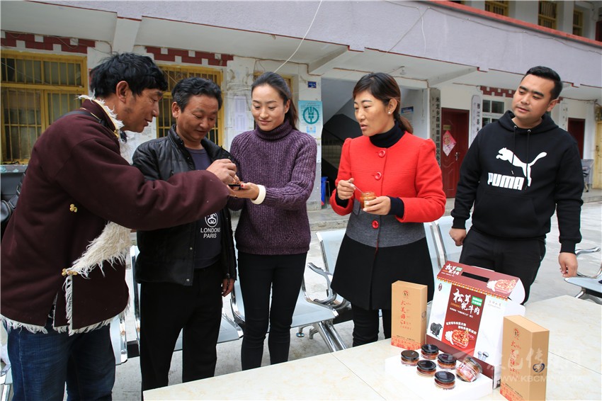 “去年,我們與宜賓市食品加工廠達(dá)成合作協(xié)議,由我們提供牦牛肉、松茸,他們提供竹筍和生產(chǎn)技術(shù),于10月份生產(chǎn)出‘藏大媽’牦牛肉罐頭,經(jīng)過幫扶單位動員訂購、搞產(chǎn)品展銷等,每瓶按照35元的價格出售。去年生產(chǎn)的5萬瓶罐頭已全部賣完,主要銷往宜賓、雅江、瀘州等地,產(chǎn)值達(dá)63萬元,除去成本和村集體提留,村民分紅11.5萬元,其中貧困戶分紅2000元,非貧困戶分紅1500元?!睋碇叶嗉獏R報了罐頭生產(chǎn)運(yùn)行的情況。