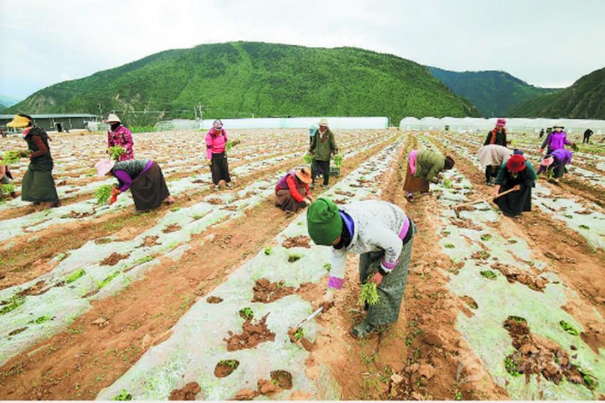 圖為農(nóng)牧民在千畝有機(jī)蔬菜、藥材種植示范基地務(wù)工。 楊成龍 攝